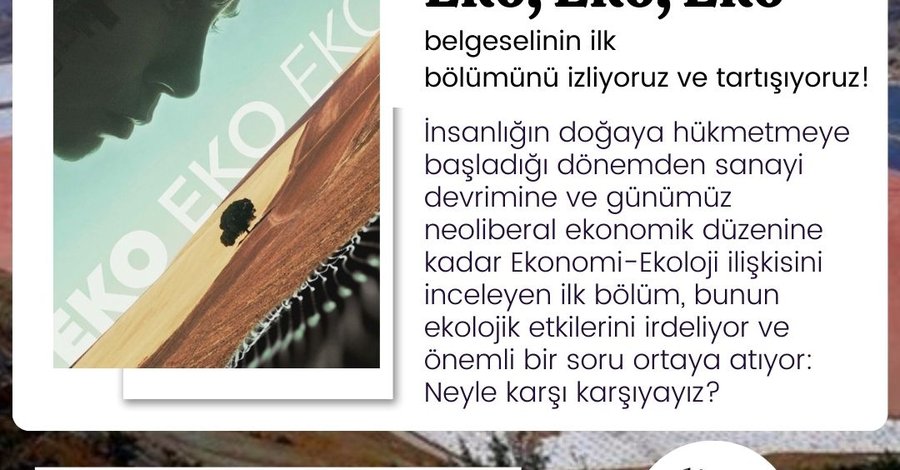 Eko, Eko, Eko belgeselinin ilk bölümünü izliyor ve tartışıyoruz! İnsanlığın doğaya hükmetmeye başladığı dönemden sanayi devrimine ve günümüz neoliberal ekonomik düzenine kadar Ekonomi-Ekoloji ilişkisini inceleyen ilk bölüm, bunun ekolojik etkilerini irdeliyor ve önemli bir soru ortaya atıyor: Neyle karşı karşıyayız?