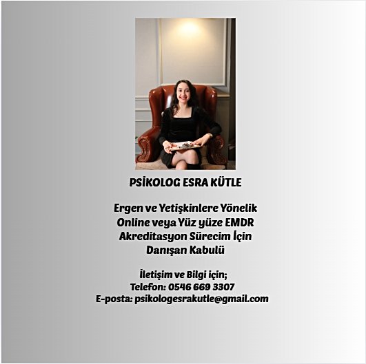 Ben Psikolog Esra Kütle, 2. Düzey EMDR Terapistiyim. Bu kapsamda: