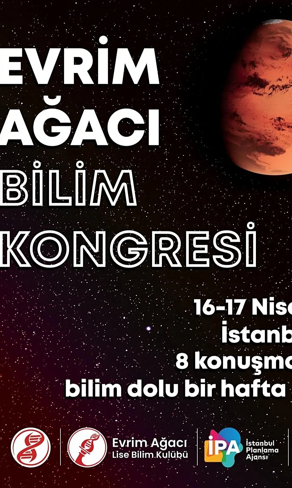 16-17 Nisan 2022 tarihlerinde İstanbul Planlama Ajansı'nın Florya Kampüsü'nde gerçekleşecek olan, @evrimagacilise ile düzenlediğimiz etkinliğimizde, birbirinden değerli isimler, kendi uzmanlık alanlarında bize bilimin farklı kısımlarını anlatacaklar, sorularınızı yanıtlayacaklar.