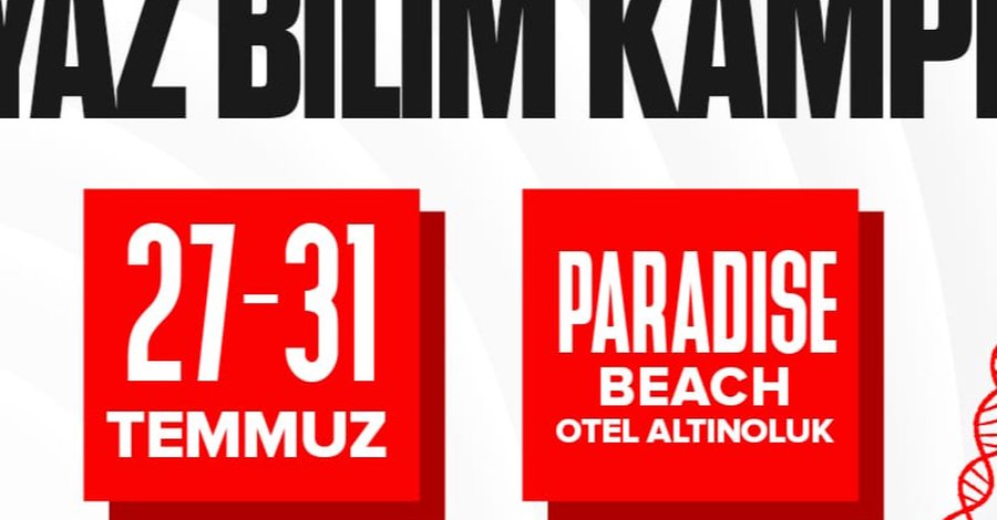 Bu yıl ilkini düzenleyeceğimiz yaz bilim kampımızı 27-31 Temmuz tarihleri arasında 4 gece 5 gün olarak Balıkesir'deki Altınoluk Paradise Beach Hotel'de gerçekleştireceğiz. 🏖🧪