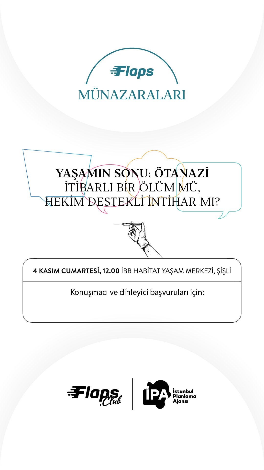 Flaps Münazaraları, 4 Kasım Cumartesi günü saat 12'de İBB Habitat Yaşam Merkezi'nde "Ötanazi: İtibarlı bir ölüm mü, hekim destekli intihar mı?" sorusunu masaya yatıracak.