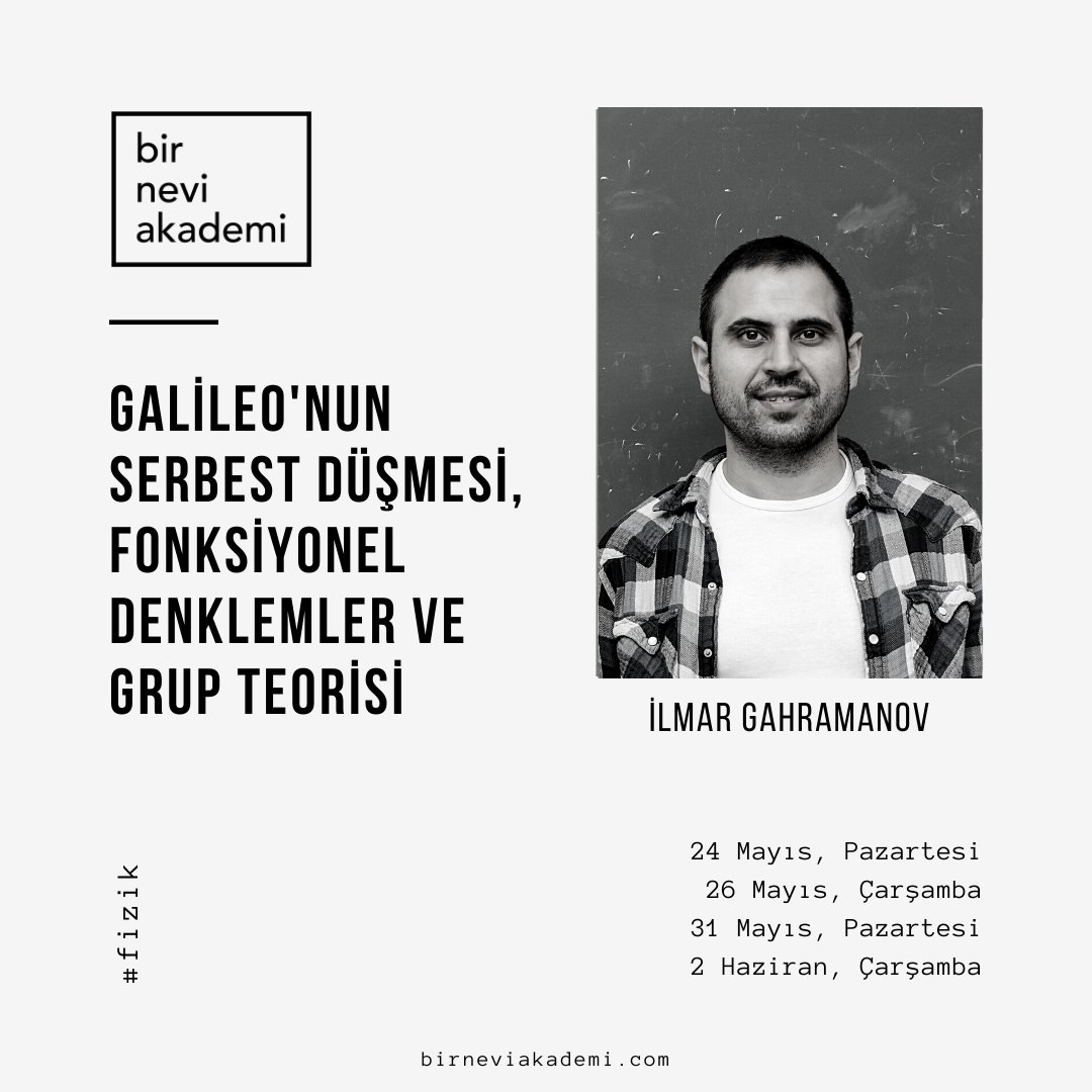 Açıklama: Galileo’dan başlayarak fizik problemlerini çözmek için fonksiyonel denklemler kullanılmaktadır. Bu derslerde serbest düşme problemini çözmek için bu tür denklemler inceleyeceğiz. Fonksiyonel denklemleri çözerken doğal olarak grup teorisi de ile tanışacağız.