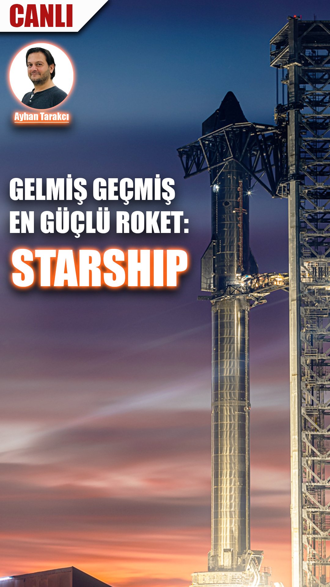 SpaceX şu anda geliştirdiği gelmiş geçmiş en güçlü roket olan Starship önümüzdeki aylarda ilk kez uzaya fırlatılacak. Ve biz de Starship hakkında derinlemesine konuşmak için önümüzdeki çarşamba günü Ayhan Tarakcı hocamızla yayında olacağız.