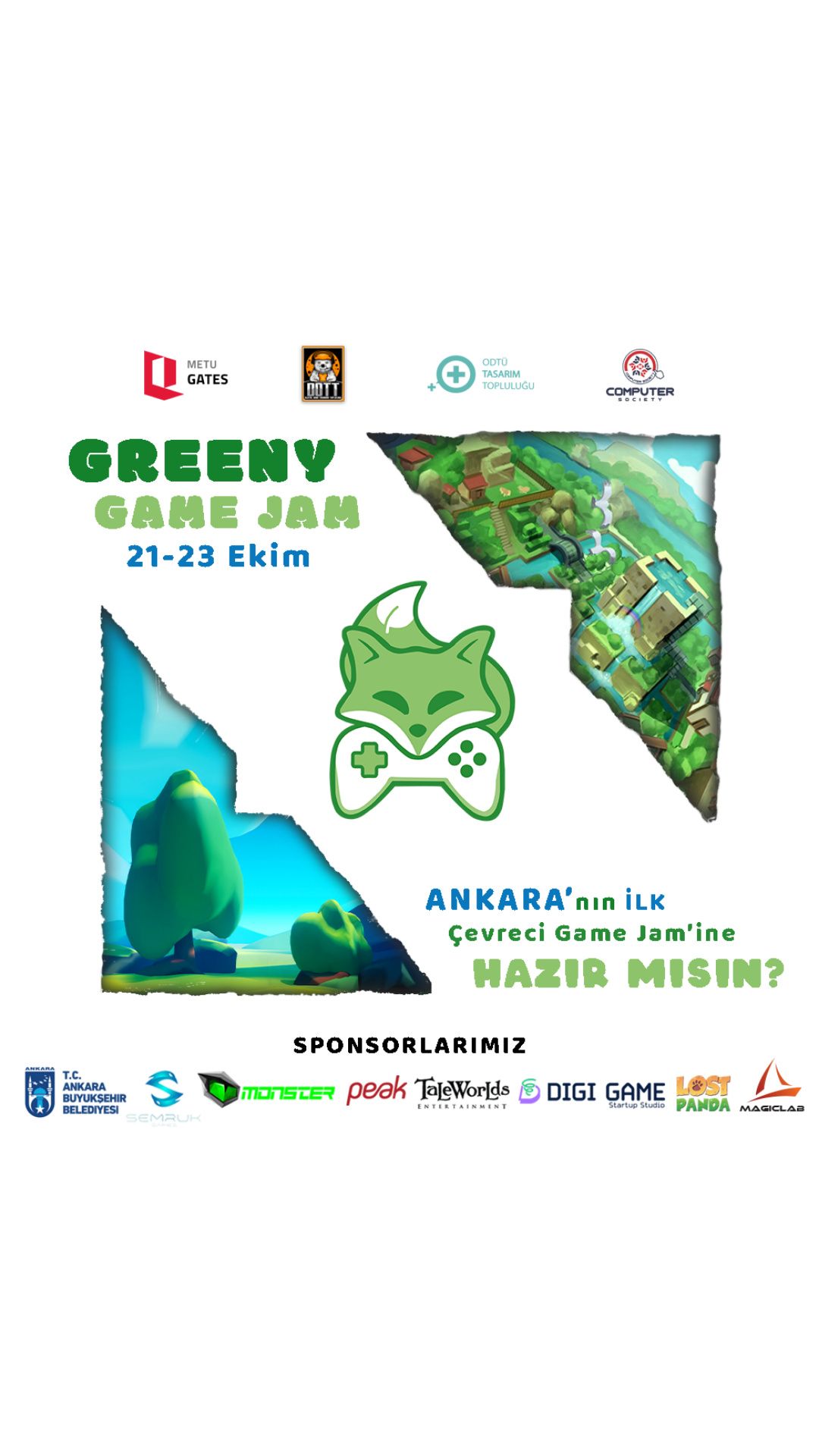 🎮 Orta Doğu Teknik Üniversitesi, Gazi Üniversitesi ve Başkent Üniversitesi öğrenci toplulukları tarafından düzenlenen, alanında öncü teknoloji şirketlerinin sponsor olduğu Greeny Jam'e katılıp yepyeni ekip arkadaşlarıyla tanışabilir ve diğer oyun geliştiricileriyle ağ kurabilirsin.