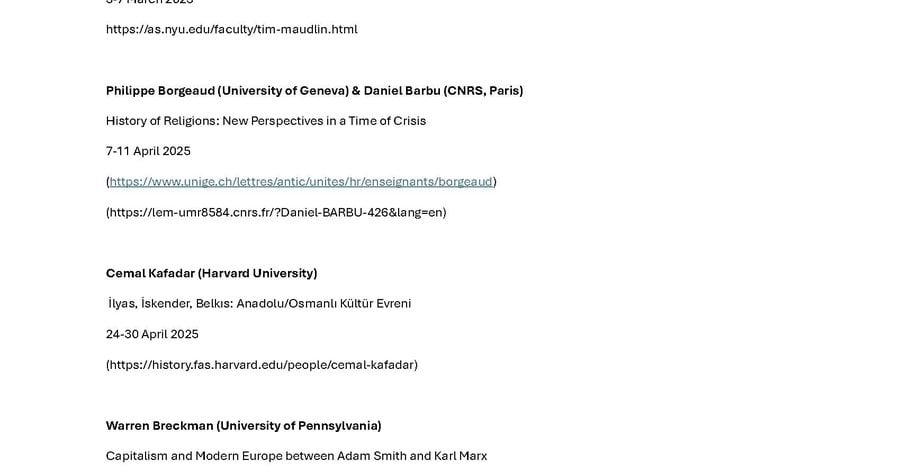 📌 Philippe Borgeaud (University of Geneva) & Daniel Barbu (CNRS, Paris) – Kriz Çağında Dinler Tarihi Üzerine Yeni Perspektifler (7-11 Nisan 2025)