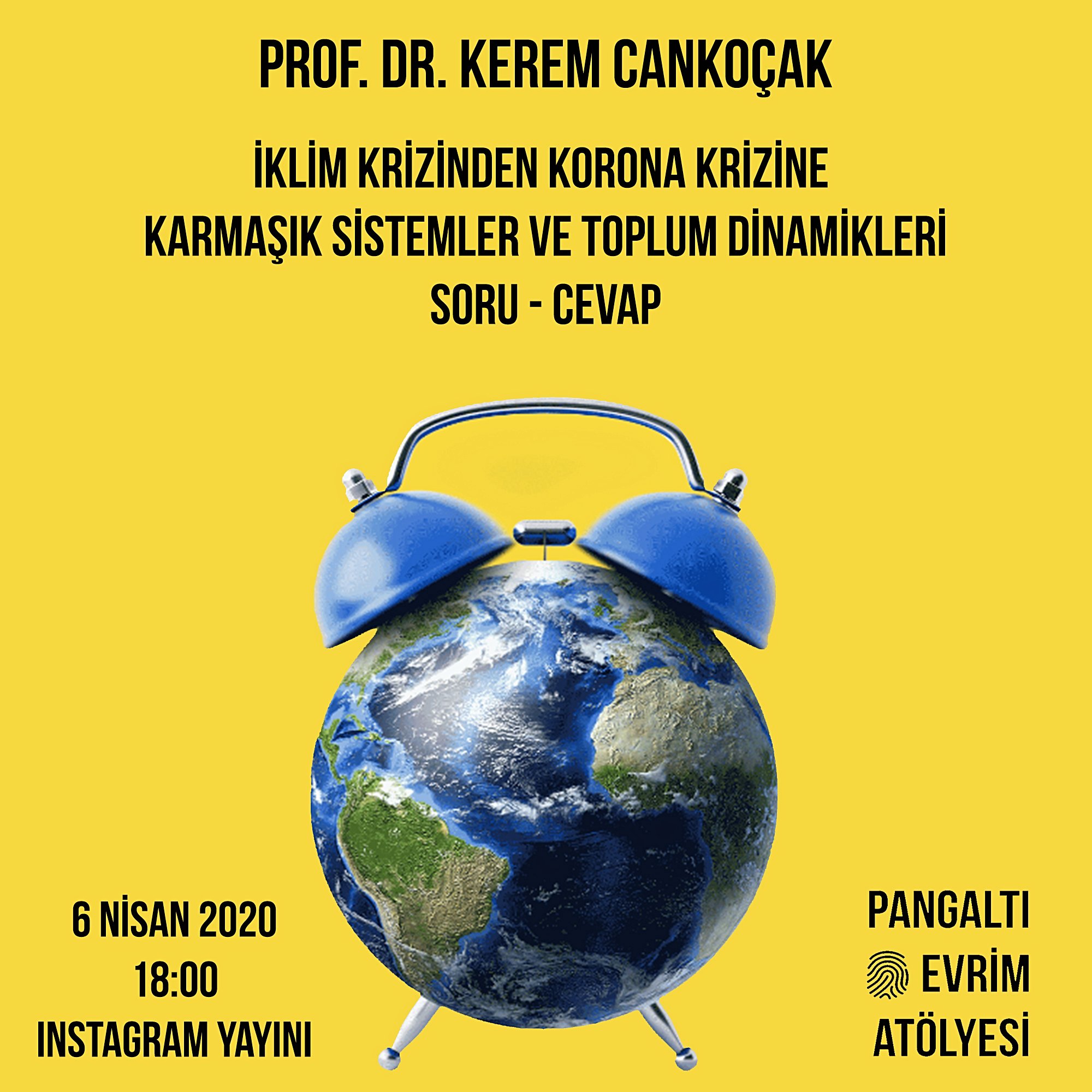 Prof. Dr. Kerem Cankoçak ile 6 Nisan Pazartesi günü 18:00'da İklim Krizinden Korona Krizine Karmaşık Sistemler ve Toplum Dinamikleri'ni konuşacağız. Daha çok katılımcıların soru cevaplarına yer vereceğiz.