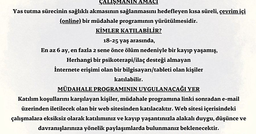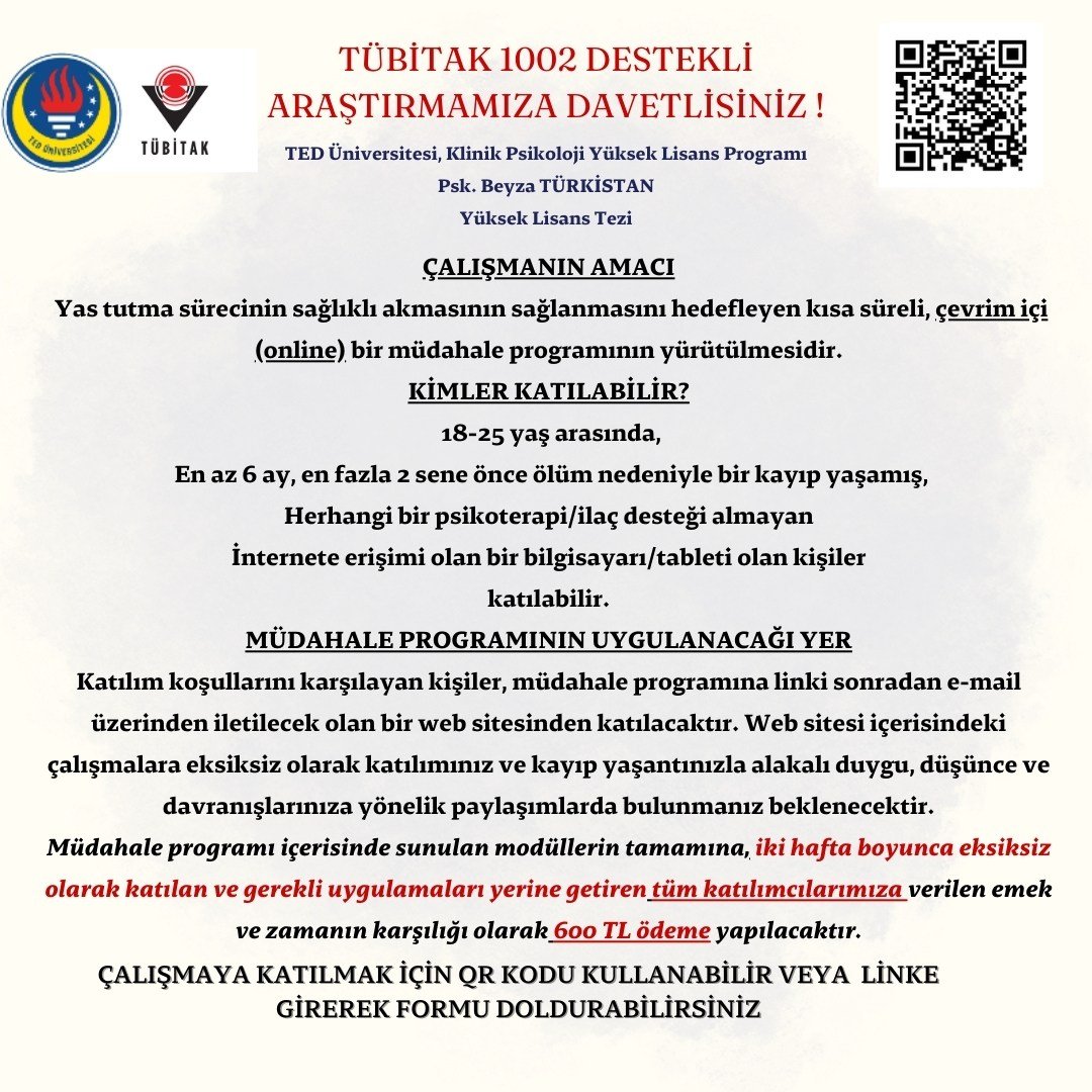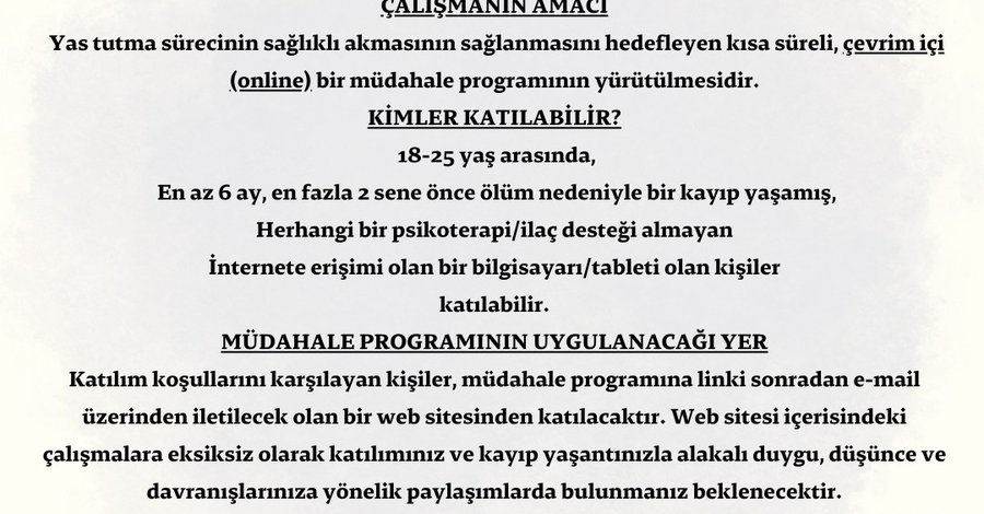TÜBİTAK 1002 Destekli projemiz kapsamında, ölüm nedeniyle kayıp yaşamış kişilere yönelik destekleyici bir online müdahale programı uyguluyoruz.