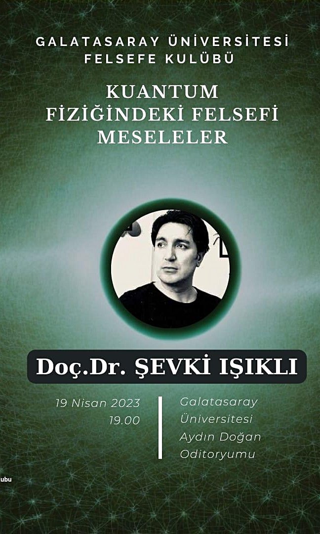 Herkese merhabalar, 19 Nisan çarşamba günü saat 19:00 de Şevki Işıklı hocamız ile “Kuantum Fiziğindeki Felsefi Meseleler” adlı bir konferansımız olacak. Hepinizi bekleriz💫 Not: Okul dışından katılım sağlayacak olanların katılım formunu doldurması zorunludur. Aksi takdirde okula giriş mümkün değildir.