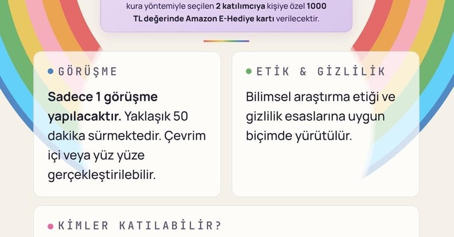 🎁 Küçük Bir Teşekkür: Görüşmeler tamamlandıktan sonra (en geç Haziran 2026), araştırmaya destek olan 8 katılımcı arasından elektronik kura ile belirlenecek 2 katılımcıya E-Hediye Kartı armağan edilecektir.