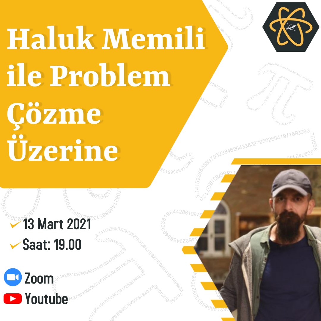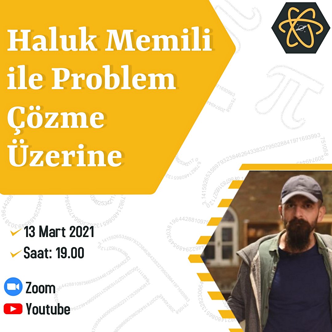 Pisagor Okulu kanalı ve Nesin Matematik Köyü'ndeki dersleri ile bilinen ve sevilen matematikçi Haluk Memili ile "Problem Çözme Üzerine" adlı etkinliğimiz 13 Mart saat 19.00'da Zoom + YouTube üzerinden yayınlanacaktır. Tüm matematik aşıklarını bekliyoruz!