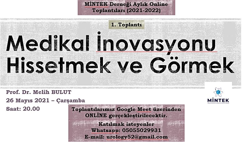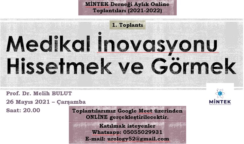 MİNTEK (Medikal İnovasyon, Teknoloji ve Kuantum Derneği)'nin Aylık Online Toplantısıdır. TOPLANTIYA KATILMAK İSTEYENLERE, TOPLANTIDAN 15 Dk ÖNCESİ şifre gönderilecektir. (