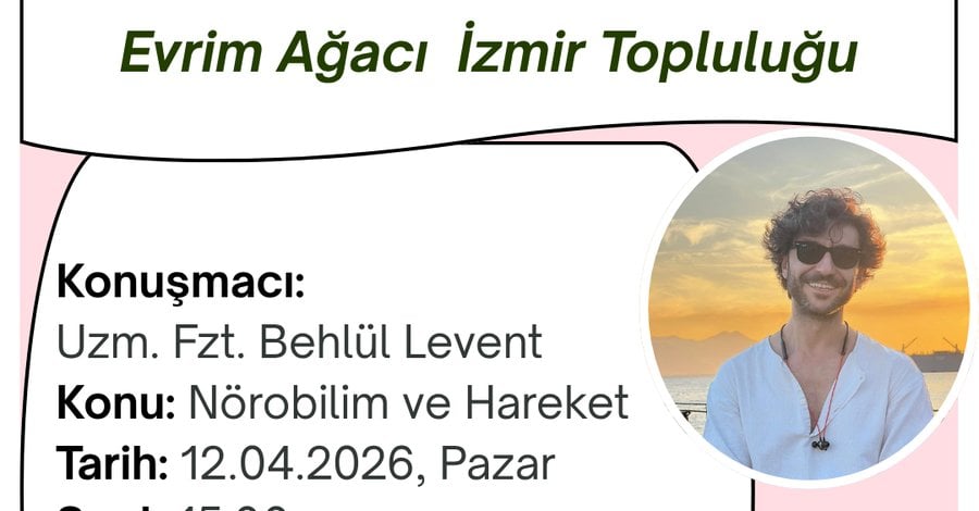 Evrim Ağacı İzmir Şehir Topluluğu olarak, “Nörobilim ve Hareket” konusundaki akademik bilgisi ve alandaki deneyimi ile Uzm. Fizt. Behlül Levent konuğumuz olacak.