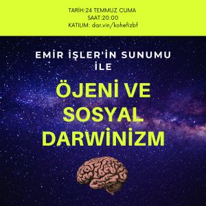 Ekibimizden Emir İşler bize 24 Temmuz 2020 tarihinde Öjeni ve Sosyal Darwinizm isimli bir sunum yapacaktır. Etkinliğimiz Discord sunucumuzda yapılacaktır.