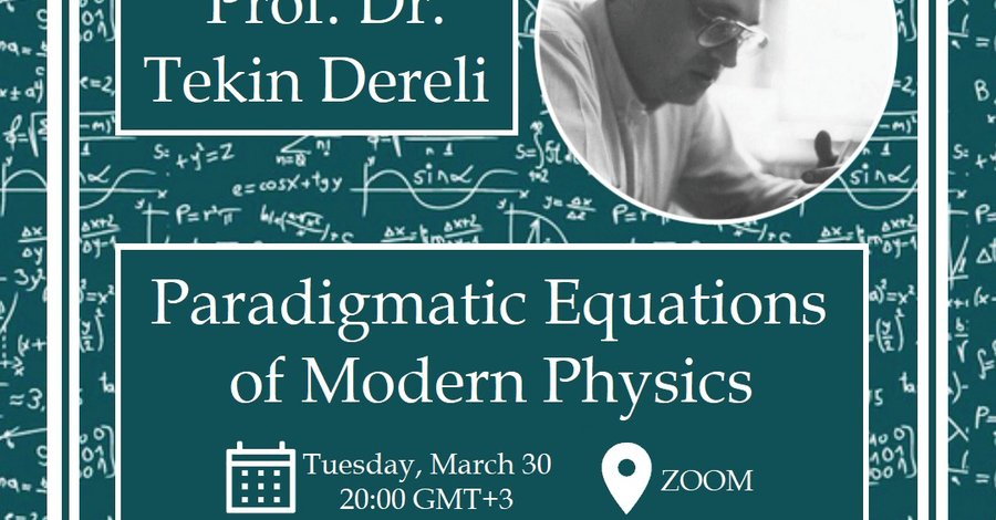 Ulusal Fizik Öğrencileri Birliği adına hazırladığımız Fizik Kolokyumları Serisi'ne Koç Üniversitesi Bilim Kulübü'nün düzenlediği kolokyum ile devam ediyoruz. 30 Mart Salı günü saat 20.00'da gerçekleşecek olan Koç Üniversitesi Fizik Bölümü'nden Prof. Dr. Tekin Dereli "Paradigmatic Equations of Modern Physics" konulu kolokyumuna ilgilenen herkesi bekliyoruz!