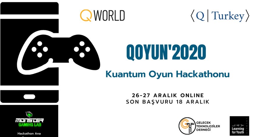 QTurkey olarak yeni bir hackathonla sizlerle bir araya geliyoruz. QOyun Kuantum Oyun Hackathonu Monster Gaming Lab ana sponsorluğunda 26-27 Aralık tarihlerinde online olarak gerçekleşecek. QOyun Hackathon'u tasarımcıları, oyun geliştiricileri ve kuantum teknolojileriyle ilgili kişileri bir araya getirerek birlikte kuantum oyunlar geliştirmelerine olanak sağlamayı amaçlıyor.