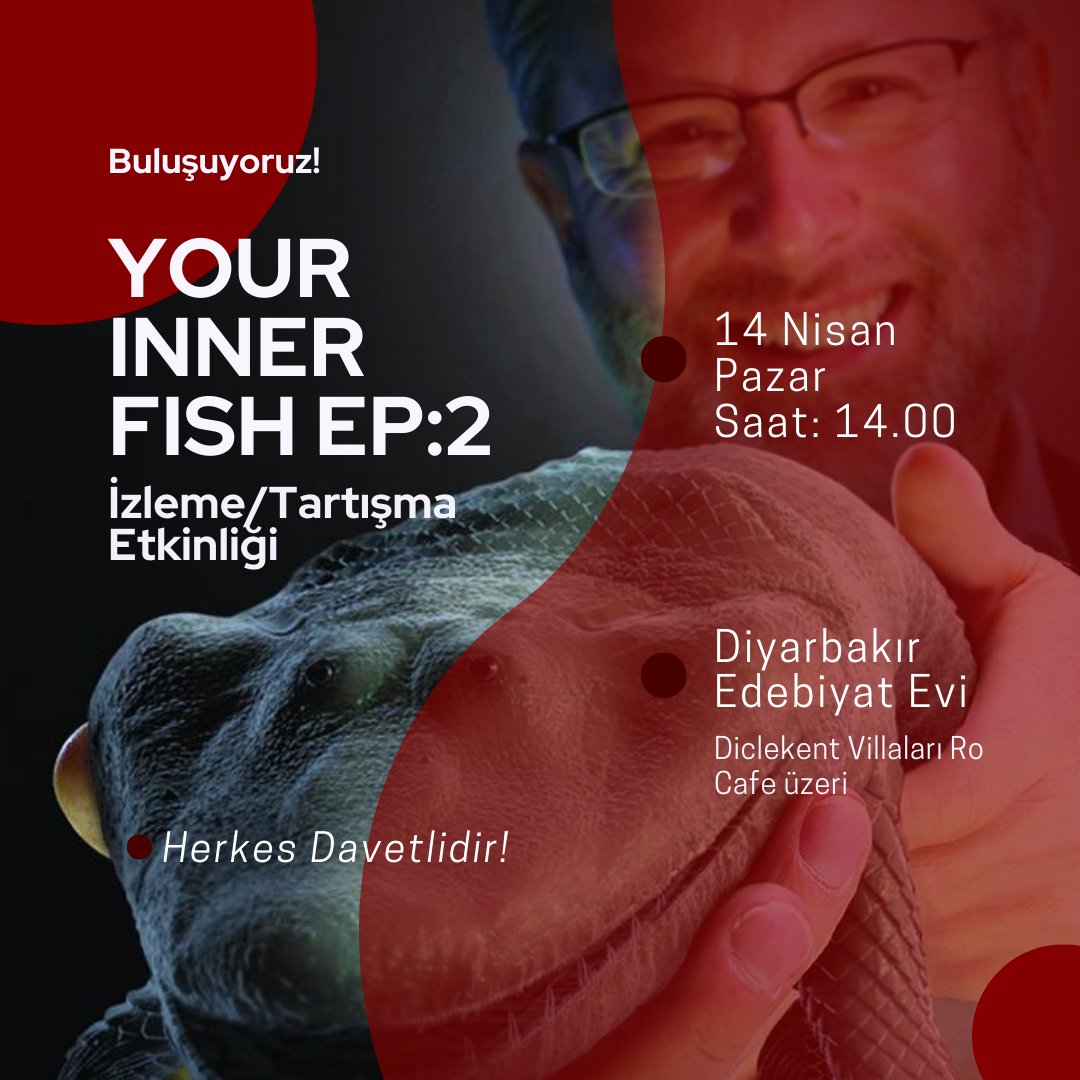 14 Nisan 14.00'te Diyarbakır Edebiyat Evi'nde İçimizdeki Balık belgeselinin 2. bölümünü izlemek ve tartışmak için toplanıyoruz! Etkinliğe tüm Diyarbakır davetlidir.