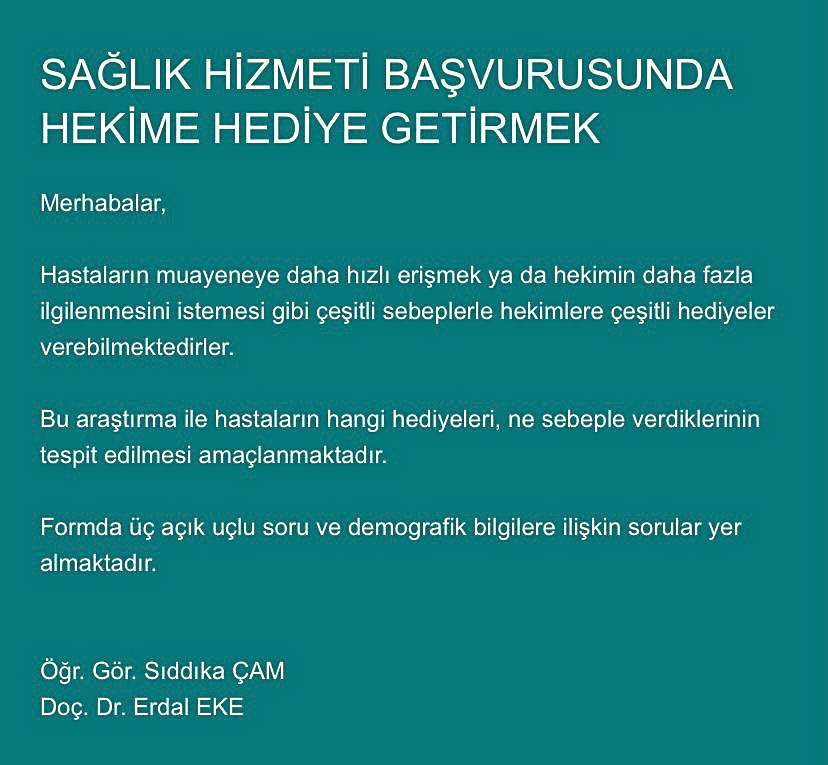 Bu araştırma ile hastaların hangi hediyeleri, ne sebeple verdiklerinin tespit edilmesi amaçlanmaktadır.