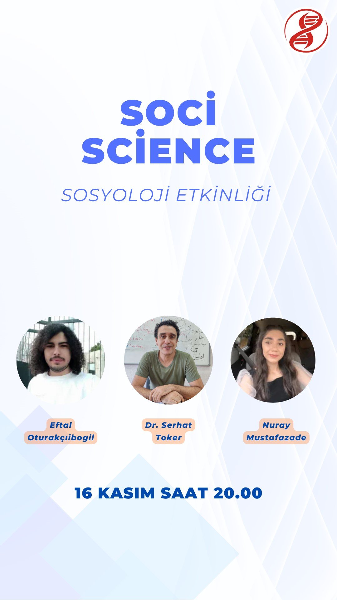 Sosyal Bilimler ekibimizin sizler için hazırladığı bu etkinliğimizde Dr. Öğretim Görevlisi Serhat Toker'i ağırlıyoruz. Sosyolojinin hayatımızdaki yeri ile ilgili bütün merak ettikleriniz için etkinliğe katılmayı unutmayın.