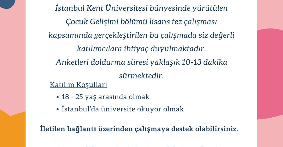 Tez aşamasındayız ve uzun bir süredir hedeflediğimiz katılımcı sayısına erişemedik. Destek olabilirseniz minnettar oluruz.