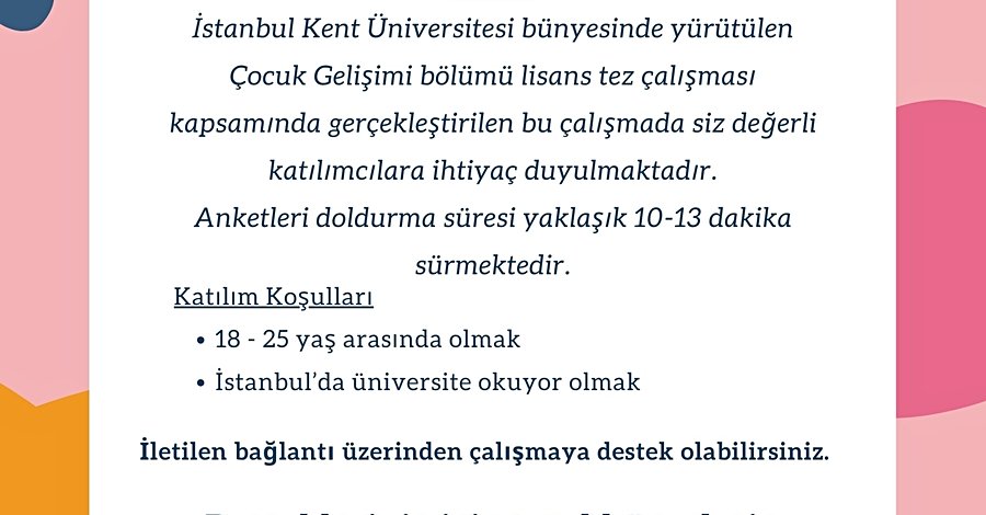 Tez aşamasındayız ve uzun bir süredir hedeflediğimiz katılımcı sayısına erişemedik. Destek olabilirseni...
