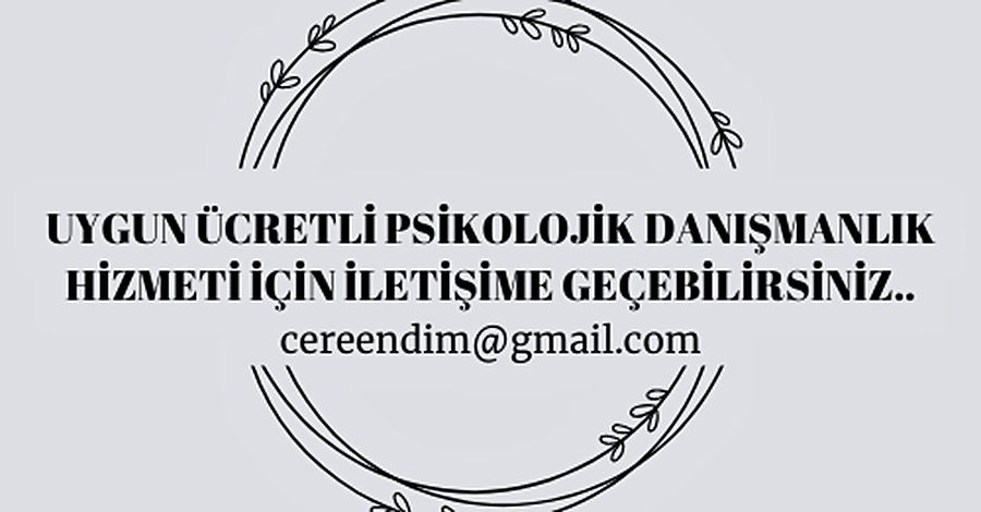 Merhaba ben psikolog Ceren Dim. Arel Üniversitesi Klinik Psikoloji programında yüksek lisans yapmaktayım ve uygun ücretli danışmanlık vermekteyim. İlgilenenler 05304668487 numarasını arayıp ya da [email protected] adresine mail atarak bana ulaşabilir.