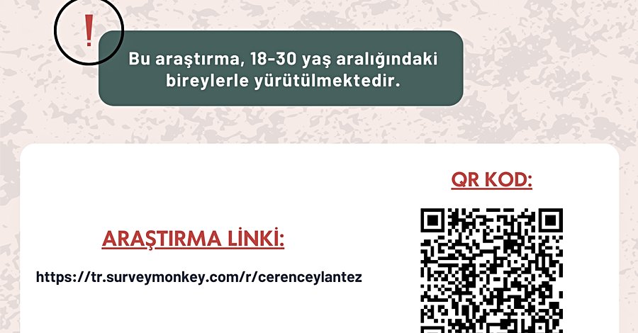Maltepe Üniversitesi Klinik Psikoloji yüksek lisans programı öğrencisi olarak, Dr. Öğr. Üyesi Başak Bahtiyar danışmanlığında yürüttüğüm tez araştırmam için 18-30 yaş aralığında bulunan bireylerin katılımına ihtiyaç duymaktayım. Yaklaşık 20-25 dakikanızı anketime ayırırsanız çok sevinirim. Desteğiniz için şimdiden teşekkürler.