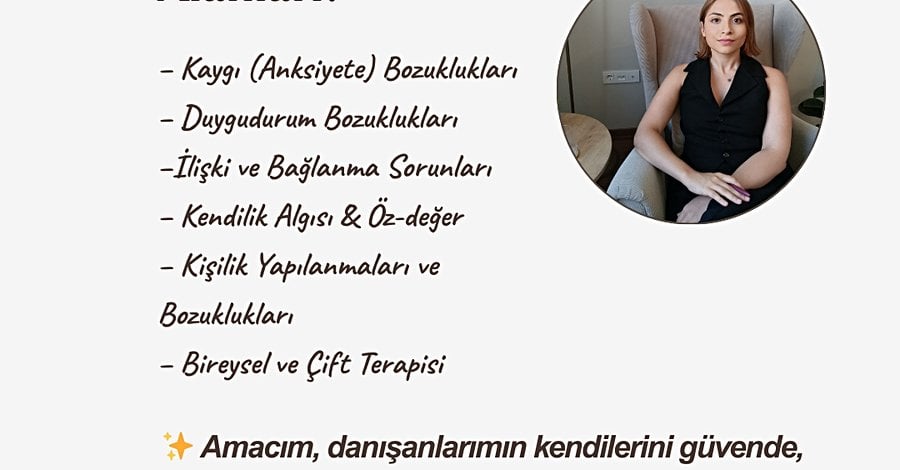 Amacım, danışanlarımın kendilerini güvende, anlaşılmış ve desteklenmiş hissedecekleri; etik ve kanıta dayalı bir terapi süreci inşa etmek.