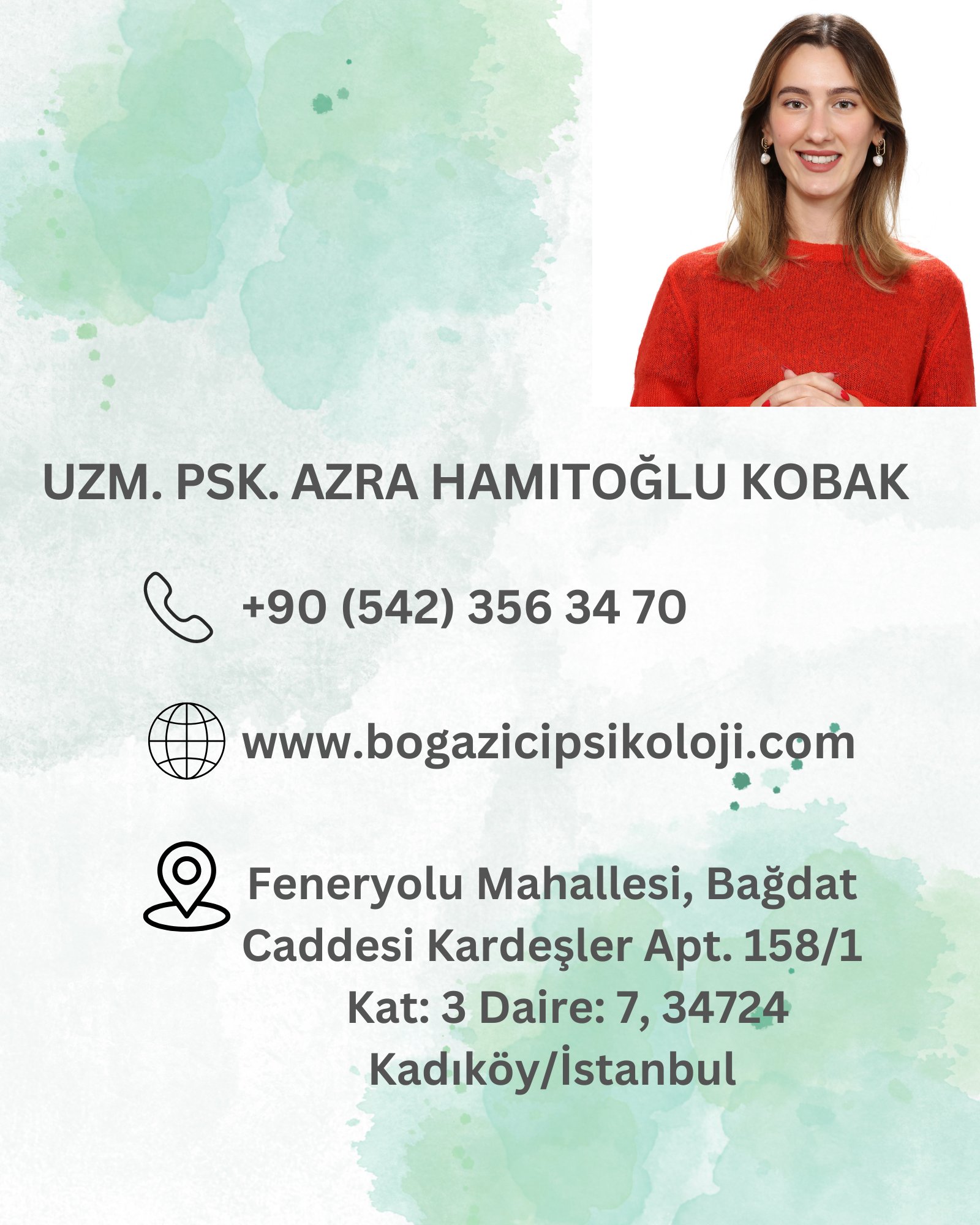 Merhaba, Ben Azra Hamitoglu. Psikoloji alanındaki lisans eğitimimi Kanada'da University of British Columbia'da tamamladım. Bu süreçte, temel psikoloji disiplininde güçlü bir teorik temel edindim ve akademik alanda aktif olarak çalısmalara katildim.