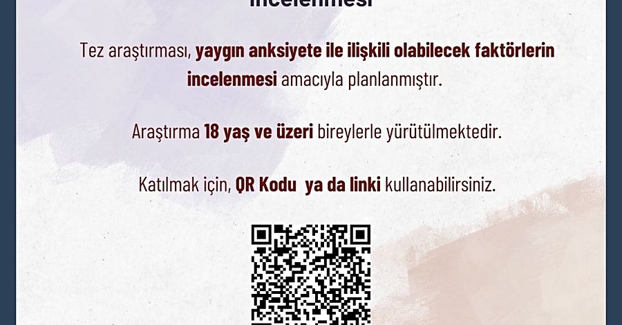 Maltepe Üniversitesi Klinik Psikoloji Yüksek Lisans Programı kapsamında Doç. Dr. Kuntay Arcan danışmanlığında yürüttüğüm tez araştırmasına katılımınızı rica ederim. Araştırmaya katılmak için 18 yaşından büyük olmanız yeterlidir.