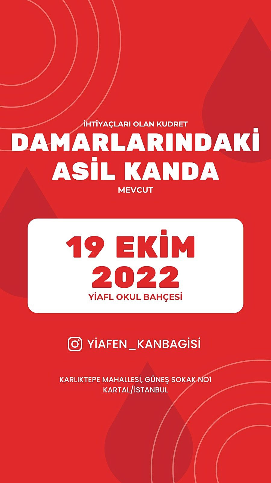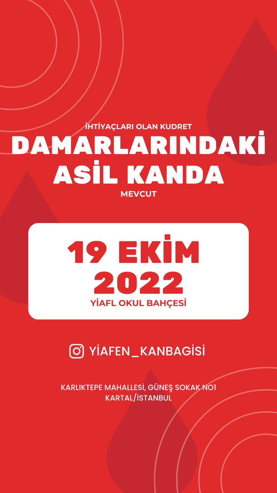 Yüksel-İlhan Alanyalı Fen Lisesi olarak bu yıl okulumuzda 19 Ekim'de üçüncüsünü gerçekleştireceğimiz bir kan bağışı etkinliği düzenliyoruz. Sizden katılımınızı, sosyal medya hesaplarınızda bizi/afişimizi paylaşmanızı ve desteğinizi rica ediyoruz. Düzenleyeceğimiz bu etkinlikte bize destek vererek katılım sağlamanızı ve bu faydalı etkinliğe katkınızın bulunmasını çok isteriz. (18-65 yaş aralığındaki düzenli ilaç kullanımı olmayan her sağlıklı birey kan verebilir.)