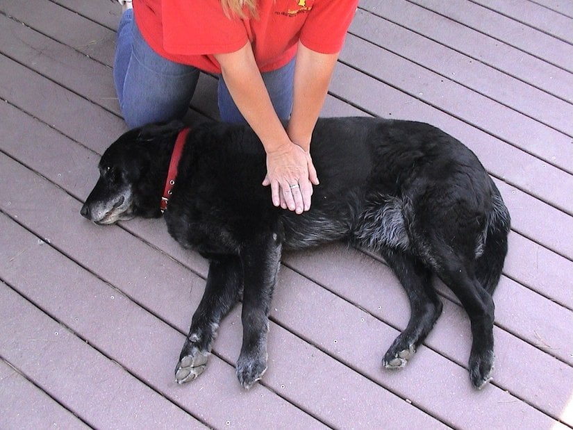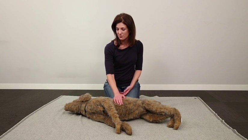 - Avuçlarınızdan birini köpeğin göğüs kafesine, kalbin yakınlarına yerleştirin. Doğru konumlanmak için, göğüs kafesinin en geniş olduğu yeri hedef alabilirsiniz.