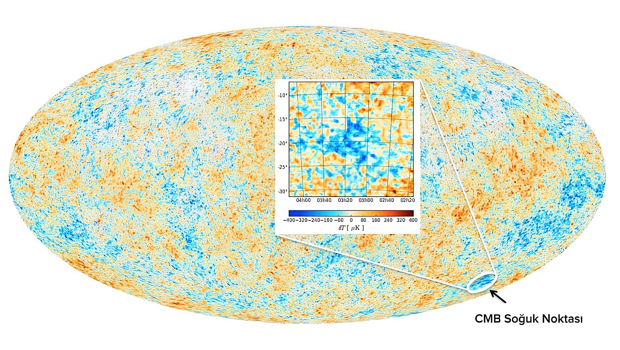 - Kozmik Mikrodalga Arkaplan Işıması'nda keşfedilen CMB Soğuk Noktası, standart kozmolojik modele göre açıklanması zor olan ve yaklaşık %1,85 olasılıkla rastgele oluşmayan bir sıcaklık anomalisi olarak tespit edilmiştir.