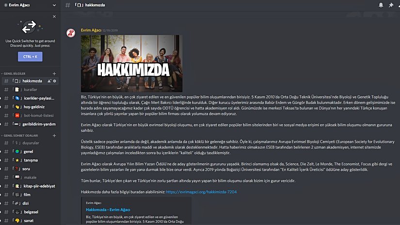 - Ancak 2019 yılı, Evrim Ağacı için niteliği niceliğin önüne geçiren bir yıl da oldu: Yıl boyunca yeterli bilgi vermeyen, çok eski yıllara ait ve kalite standartlarımıza uymayan 650 adet içeriğimizi yayından kaldırdık. Bu tarz kapsamlı bir temizliğe rağmen, Evrim Ağacı'nda toplamda 7257 içerik yayında bulunuyor.