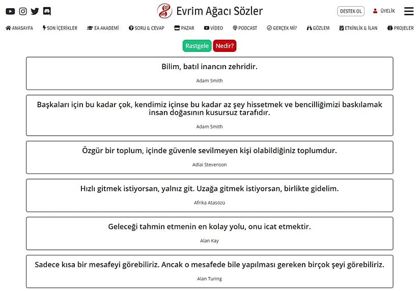 - Evrim Ağacı, Alexa verilerine göre bu yıl Türkiye'nin en çok ziyaret edilen 615 sitesinden biri olmayı başardı. Bu, devlet destekli bilimsel girişimler haricinde, bilim platformları için (bildiğimiz kadarıyla) bir ilk! Tabii ki hedefimiz çok daha büyük; ancak sadece Türkiye'de bulunan 19.5 milyon site arasından böyle bir başarıya erişebilmek bizler için müthiş bir onur!