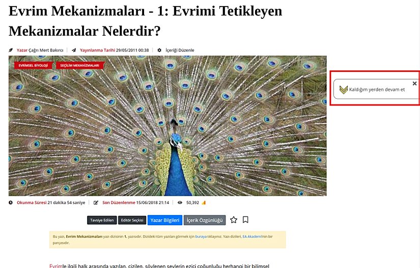 EA Akademi, sitemize kayıt olup, giriş yaptığınız takdirde yazı dizileri içindeki ilerleyişinizi takip etmektedir. Bir yazıyı görüntüleme, hızlıca göz atma, belli bir miktarını okuma ve tamamlama gibi farklı davranışları kaydeder. Böylece, EA Akademi'ye geri döndüğünüzde sistemimiz size nerede kaldığınızı gösterebilir, sizi yönlendirebilir.