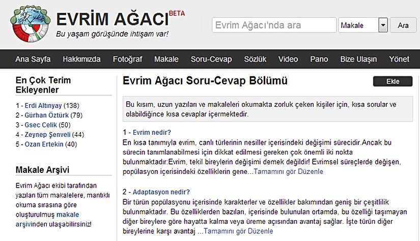 ÇOK YAKINDA SİZLER DE BİRER EVRİM AĞACI YAZARI OLABİLİRSİNİZ! Sitemiz, ilk etapta sıradan bir internet sitesi olarak gözükebilecek olsa da, önümüzdeki dönemde çok orjinal ve Türkiye'de ilk defa uygulanacak bir projeye dönüşecektir. Bu projenin detaylarını, gizlilikten ötürü şu etapta vermeyeceğiz. Ancak çok yakın zamanda, sizlerin de günlük yaşantınız içerisinde birer Evrim Ağacı Yazarı olabileceğinizi ve kendi araştırma ve bilgilerinizle Evrim Ağacı'nın devasa arşivine katkı sağlayabileceğinizi ve Türkçeye çok kıymetli bilgiler kazandırabileceğinizi "çıtlatmış" olalım.