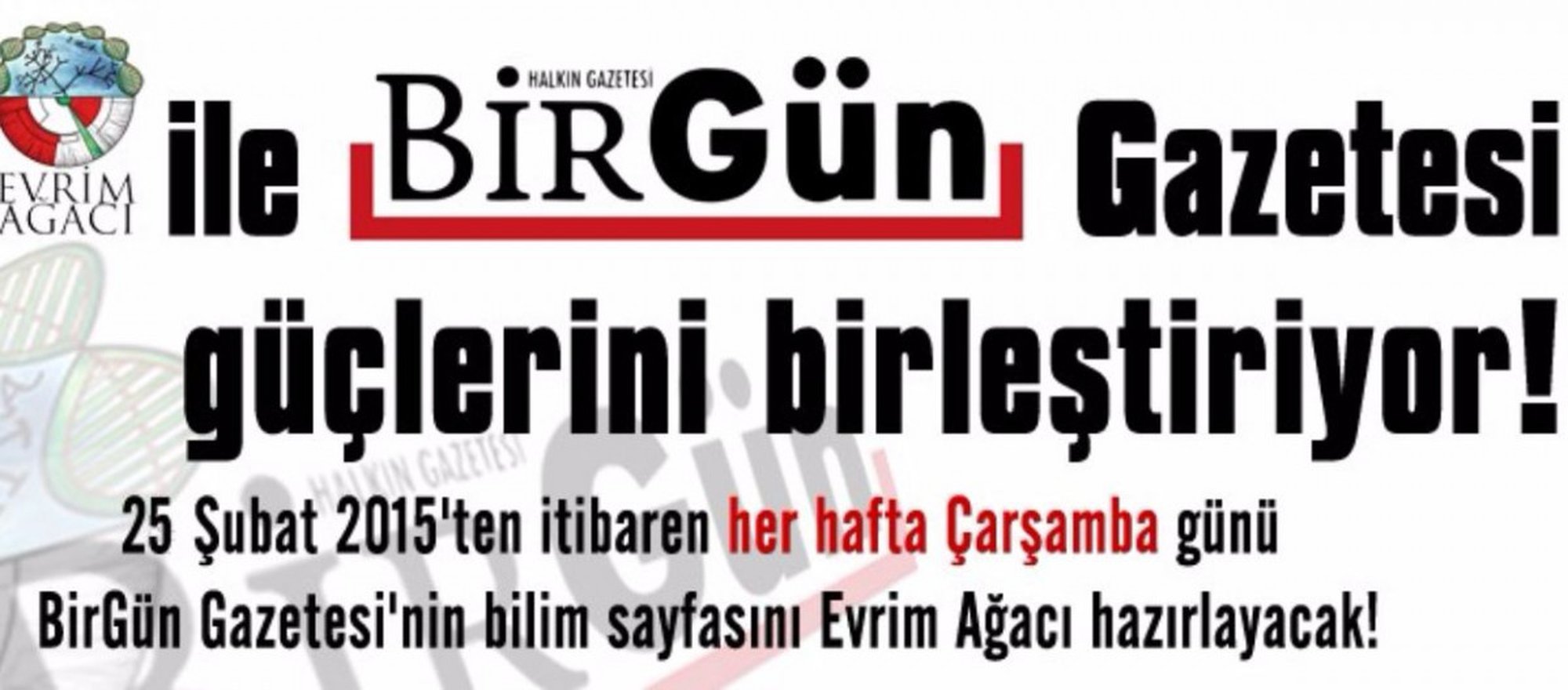 Bu haftadan itibaren her hafta Çarşamba günü BirGün Gazetesi'nin bilim sayfası, Evrim Ağacı olarak bizim tarafımızdan hazırlanacak ve BirGün Gazetesi tarafından basılıp dağıtılacak! :)