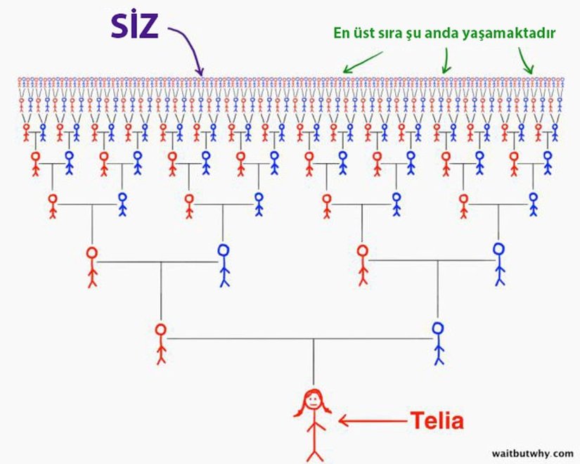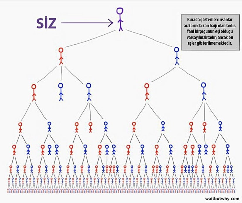 Çoğu insan için Evrim Teorisi'nin tartışmaya yer bırakmaz şekilde ortaya koyduğu türler arası kuzen-ata ilişkisi, anlaması güç kavramlardan birisidir. Halbuki sadece kendi ailelerimize bile bakarak bu evrimsel olguyu algılamamız mümkündür. Bu makalemizde, türler arası akrabalık ilişkilerinden ziyade, tür içerisindeki akrabalık ilişkilerine odaklanacağız. Bu makaleyi, buradaki makalemiz gibi bazı diğerleriyle birleştirerek analiz edecek olursanız, var olmuş, var olan ve var olacak tüm türlerin birbirleriyle nasıl akraba olduğunu anlamanız mümkün olacaktır. Gelin şimdi sizi soy hattınız içerisinde son derece ilginç bir yolculuğa çıkaralım. Bu süreçte, evrimsel biyoloji ile ilgili birçok kavramı analiz etme ve anlama fırsatı bulacağınızı umuyoruz. Hikayeyi birinci tekil şahıs olarak anlatacağız, çünkü bu hikaye Wait But Why isimli bilim sitesinin kurucusu Tim Urban'ın soy ağacı tarihine yaptığı bir yolculuğa dayanıyor. Ondan öğreneceğimiz çok şey var, dolayısıyla hemen başlayalım: