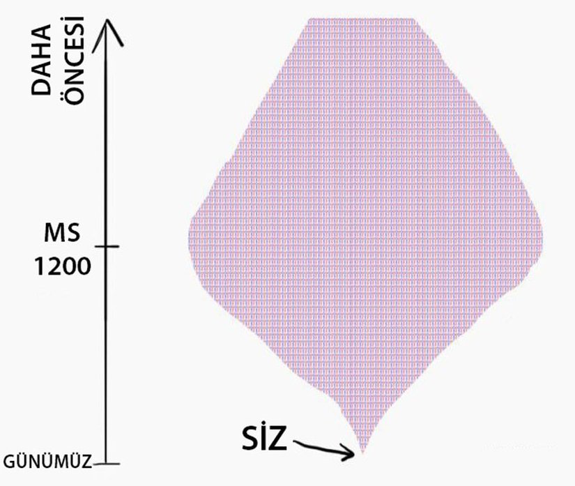 Soy Konisi’nin en geniş noktası, çoğumuz için yaklaşık M.Ö. 1200 yılında olur, o sıralar soyağacımız toplam dünya nüfusuna yakındı. O noktadan itibaren soyağacı çöküşü, yukarı doğru olan normal x2 çarpandan daha güçlü bir etmen haline gelir ve ağaç içeri doğru yaklaşır.