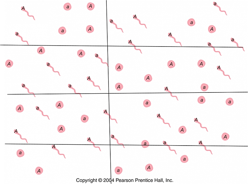 Yukarıda, spermler ile yumurtalardan oluşan bir popülasyonu görmektesiniz. Ancak şimdilik "sperm" ve "yumurta" ayrımını görmezden gelin. Şu anda odaklanmak istediğimiz, her bir "birey" üzerine yazılmış olan A ve a harfleri. Sizce bunlar ne ifade ediyor?