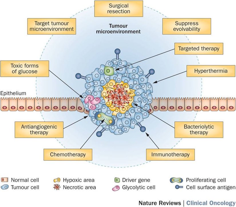 Nature Clinical OncologyKanser dediğimiz olgu, çok hücreli organizmaları oluşturan hücrelerden bazılarının mutasyonlar sonucu bölünme döngülerinin farklılaşmasıyla kontrolsüz olarak çoğalmalarıdır. Bu tür bir çoğalma, tümör denen hücre yığınlarını oluşturur. Aslında bu tür hatalı hücreler, vücudumuzda sıklıkla oluşur. Çoğu zaman bu hücreler savunma sistemimiz tarafından hemen yok edilirler. Ancak bazıları, bu savunma sisteminden kaçabilecek kadar farklıdır veya hızlıdır. Bu durumda, hızla çoğalarak çok kısa bir sürede çok miktarda nesil atlar. Bu noktadan sonra kanserli dokunun sıradan bir canlı popülasyonundan farkı yoktur: her bir hücre birbirinden az miktarda farklıdır, bu hücreler bir popülasyon oluşturur, bu popülasyon üzerine çok sayıda seçilim baskısı işler, bazıları buna diğerlerinden daha iyi direnir, hayatta kalırlar ve çoğalmayı sürdürürler. Böylece kanser popülasyonu, her bölünmeyle birlikte yeni bir nesil atlar, her nesille birlikte biraz daha evrimleşir. Bunun bir aslan, insan, at, pamuk, şeker pancarı ya da koli basili popülasyonunun evriminden hiçbir farkı yoktur (bu sayılanların bir kısmı mitozla değil, mayozla bölünür ve ürer, tek fark budur ki bu fark, sonuca doğrudan etki etmez).