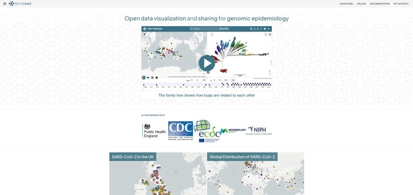 Spesifik genetik epidemiyoloji verisetlerini filogenetik görselleştirmeye çeviren Microreact da NextStrain gibi daha kısıtlı ve niş ağaçlara odaklanıyor: