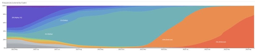 NextStrainBuradaki yükseklik miktarı, belli bir virüs suşunun popülasyon içindeki frekansını, dolayısıyla baskınlığını gösteriyor.