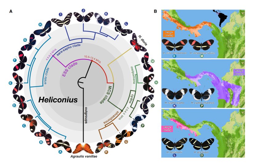 Current BiologyHeliconius kelebekleri, parlak ve envai kanat desenleriyle meşhurdur. Bilim insanları, kelebeklerin bu ayırt edici desenlerini, potansiyel avcılara kendilerinin zehirli olduğunu sinyallemek için kullandıklarını düşünüyorlar. Ayrıca erkek kelebekler bu etli ve renkli kanatlarını kullanarak dişileri etkilemeye çalışırlar. Bir şekilde, bu iki kuvvet (avcılık ve çiftleşme); And Dağları, ovalar ve düzlüklerle birbirinden izole olmuş iki ayrı kelebek türünde benzer kanat desenlerinin ortaya çıkmasını sağladı. George Washington Üniversitesi'ndeki Kelebek Evrimsel Gelişim (Evo-Devo) Laboratuvarı'nın başındaki Arnaud Martin şöyle diyor: