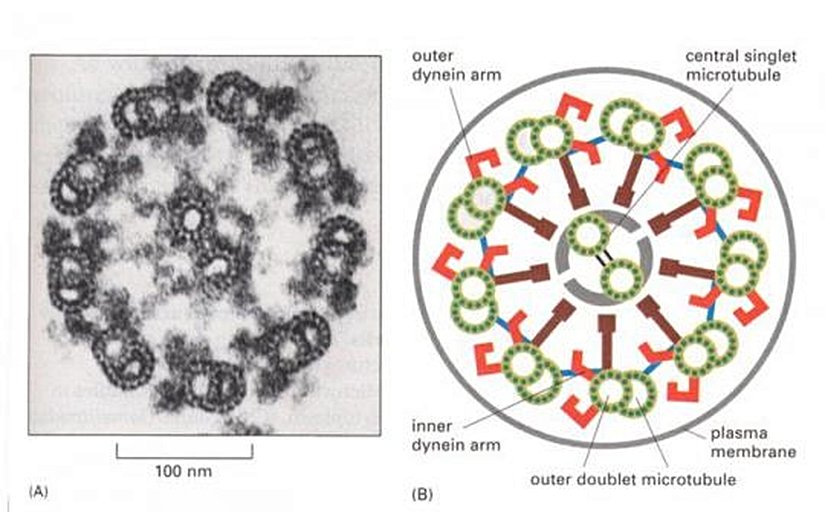 Protistların, oldukça farklı hareket tipleri bulunabilir. Bunları, ökaryotlarla ilgili yazımızda açıklamıştık. Hatırlayacağınız gibi, protistalar yalancı ayaklar (pseudopods) sayesinde veya siller (cilia) veyakamçılar (flagella) kullanarak hareket edebilirler. Yalancı ayaklar, basitçe hücre içi sitoplazmik sıvının belirli bir yönde akarak canlının o yöne doğru ilerlemesini sağlamasıdır. Siller, küçük tüysü yapılardır ve hızla ama koordineli bir şekilde çalışarak canlıyı istenilen yöne doğru ittirirler. Kamçılar ise, önde veya arkada, bir ya da birde fazla sayıda olabilir ve sillere göre çok çok daha uzun ve güçlüdür. Ancak bu farklılıklara rağmen siller ve kamçılar birebir aynı yapıya sahiptirler. Bu yapıya 9+2 planı denir. Yani 9 tane çevreleyici mikrotübül ile 2 tane merkez mikrotübülün bağlantısından 1 adet sil ya da bir adet kamçı meydana gelir. Mikrotübül, hücre içerisindeki inşa malzemelerinden biri olarak açıklanabilir.