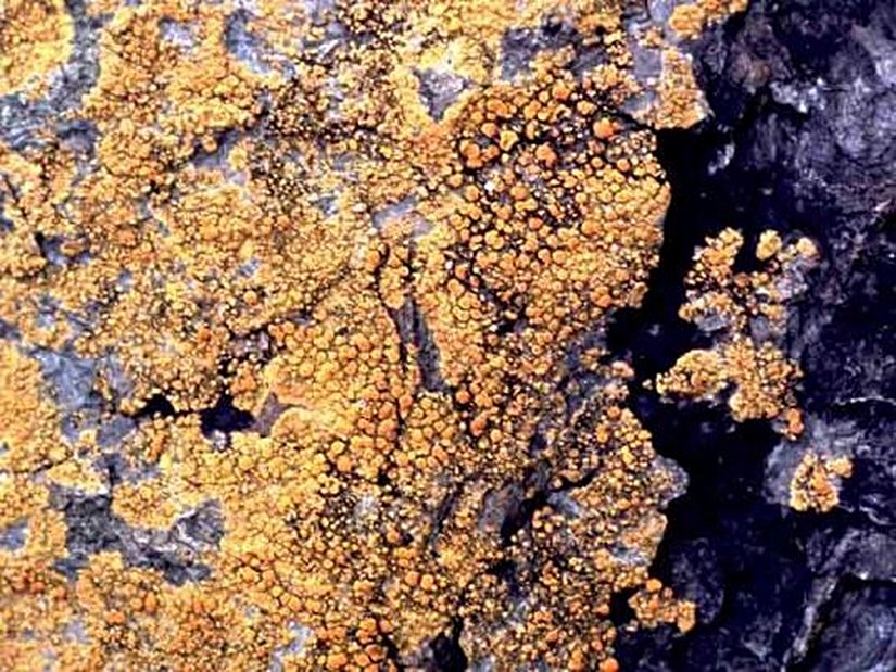 Bu fotoğraftaki fosilleri ayırt etmek uzman olmayan bir göz için zor olabilir, dolayısıyla biz size biraz daha yakından gösterelim. Aşağıda, bu kaya üzerinde bulunan Ornitafilum lornensis türü ilkin mantar yapılarını görmektesiniz: