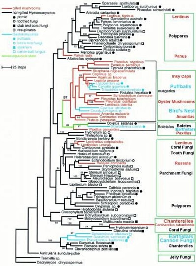Bu noktadan sonra oldukça ilginç dallanmalar görmek mümkündür. Aşağıdaki mantarlar, yukarıdaki canlıların atalarının evrimi sırasında meydana gelen dallanmalardan ve özelleşmelerden oluşmuştur: