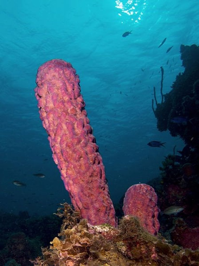 Yukarıdaki bu güzel görünümlü iki canlı, Süngerler şubesine ait birer hayvan türüdür. Süngerlerin genel özelliği, "porlu" (delikli) yapılara sahip olmalarıdır. Fotoğraflardan da görüleceği üzere bu canlıların yapısında çeşitli gözenekler, delikler, porlar bulunur. Bu yapıları oluşturan hücreler, koordine bir şekilde çalışarak suyun bu delik içerisinden akışını sağlarlar. Bu sırada su içerisindeki ufak tek hücrelilieri "filtreleyerek" avlarlar ve sindirirler. Süngerlerin, daha önce de belirttiğimiz gibi, dokuları bulunmamaktadır. Ancak temel özellikler açısından birer hayvan grubu oldukları kesindir.