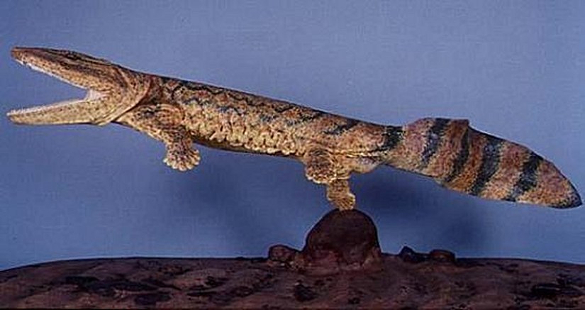 Ichthyostega: Yakın akrabası Acanthostega gibi erken bir labirodondur. 360 milyon yıl kadar önce yaşamıştır. Ancak kuzeni kadar şanslı değildir ve uzun yıllar yaşayamadan soyu tükenmiştir. Fakat kuzenine göre daha destekli bir omurgaya ve nöral kordona sahiptir. Bunlar, karada daha çok zaman geçirdiğini göstermektedir. Buna rağmen halen solungaç yarıkları ve yüzgeç kalıntıları bulunmaktadır.