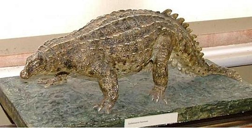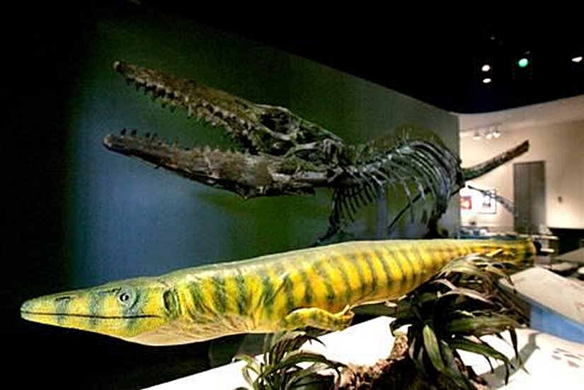 Proterosuchus: Bilinen en eski arkozordur. Erken Triyasik Dönem'de, yani günümüzden 250 milyon yıl kadar önce yaşamıştır. Arkozorlar, erken sürüngenlerin çift arklı (diapsid) bir grubudur ve dinozorlara evrimleşecek olan sürüngenleri temsil etmektedirler. Günümüzdeki kuşlar ve timsahlar, arkozorların temsilcileridir. Bu cinse ait 3 tür keşfedilmiştir. Günümüzdeki Komodo Ejderi büyüklüğündedir. Görüntüsü ilkel bir timsaha benzemektedir ve uzun çeneler, güçlü omuz kasları, kısa bacaklar ve uzun bir kuyruk gibi özellikleri timsahlarla paylaşmaktadır. Ancak timsahlardan farklı bir görünüş olarak çeneleri kancalıdır. Tıpkı günümüz timsahları gibi pusu kurarak avlanır.